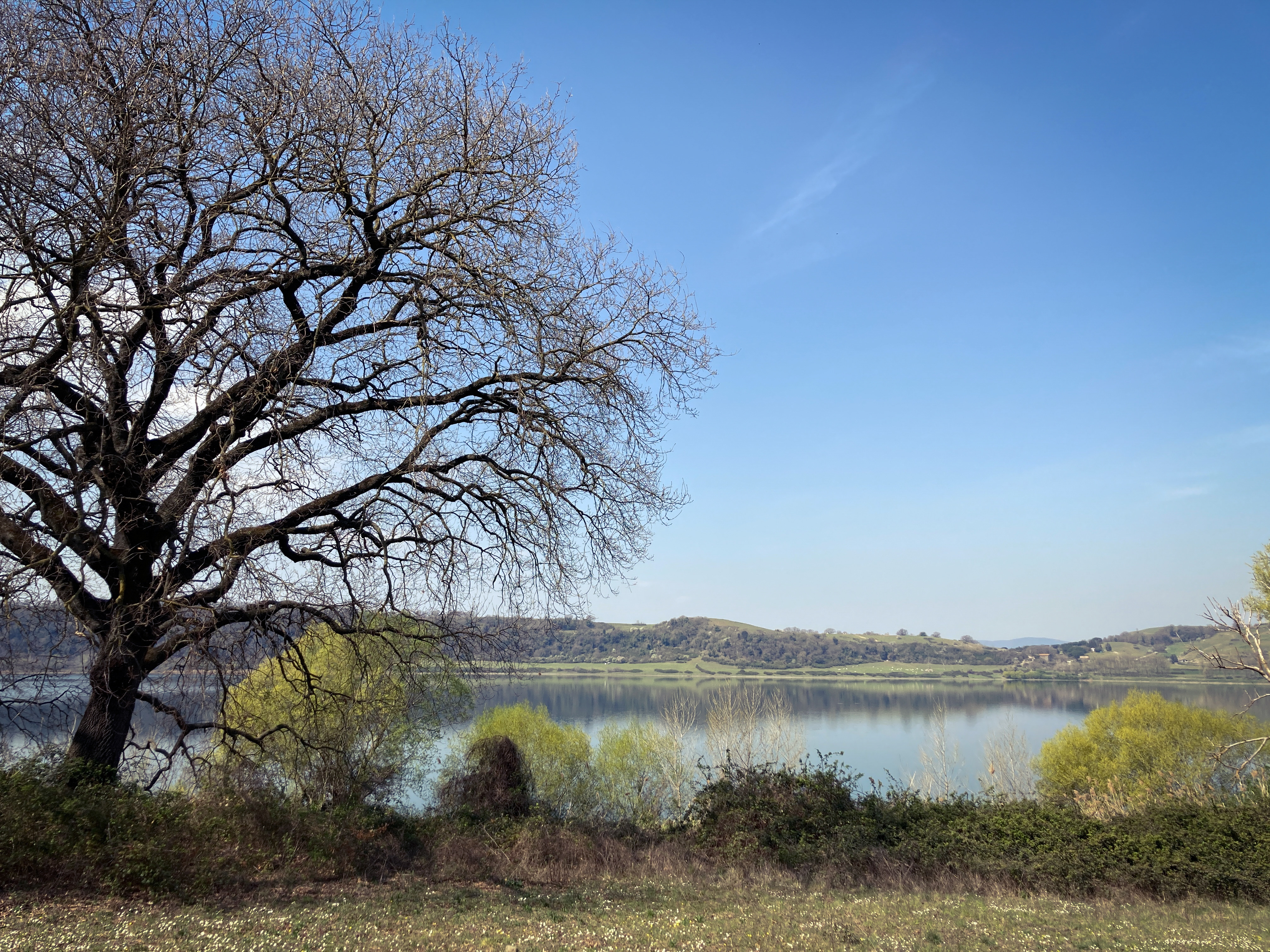 Next to Lake Bracciano, there’s a small, peaceful lake which is an extension of the Bracciano volcano: Lake Martignano. The special thing about this one is that there’s been absolutely no development on it, except for a farmhouse and an agriturismo. To prevent people from ruining this little sanctuary, the park has made it that you can no longer drive to the lake, but you must park at a nearby parking lot and take a shuttle or, as I did, hike. You can climb to the top of the hill on the eastern side and get a view of both lakes.